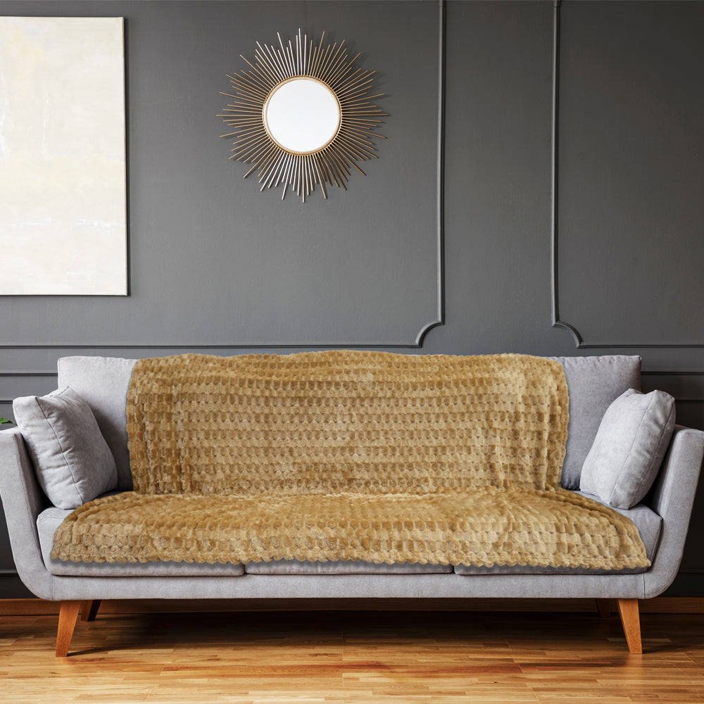 This Caramel Soft Plush 50x60in Blanket features beautiful bright colors. Blanket is made from a premium 100% Polyester fabric with a rich, soft plush feel. Machine washable convenience and rolled hem edging ensure long-lasting resilience in your home, all while staying warm and cozy!