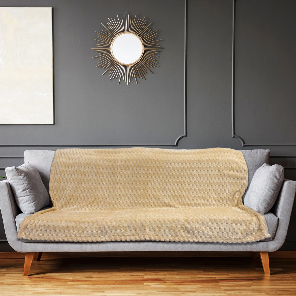 This Cream Soft Plush 50x60in Blanket features beautiful bright colors. Blanket is made from a premium 100% Polyester fabric with a rich, soft plush feel. Machine washable convenience and rolled hem edging ensure long-lasting resilience in your home, all while staying warm and cozy!