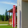 This Super Shiny First Navy Jack Wind Sock is made of a beautiful shiny polyester material. Total length is 5 feet long. Top of windsock has a strong metal clip for displaying purposes. Windsock has 6 tails that catch the breeze beautifully.