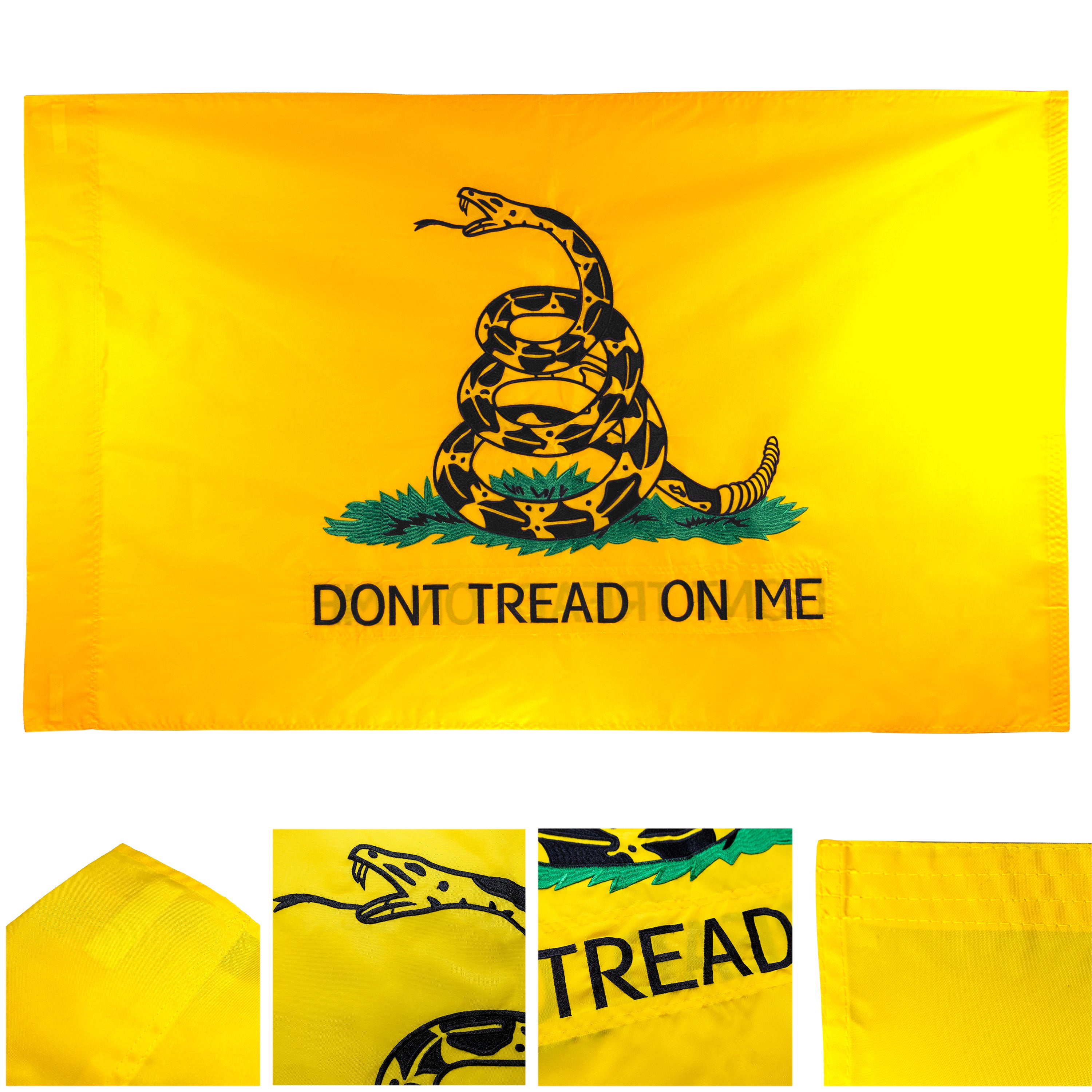Display your patriotic spirit with this premium Gadsden embroidered home banner. Crafted from durable Oxford polyester, this 3x5 foot flag features meticulous embroidered detailing that captures the iconic "Don't Tread on Me" design with exceptional clarity and longevity. The heavyweight fabric resists fading and fraying, making it ideal for indoor or covered outdoor display. Perfect for homes, offices, or collectors who demand quality craftsmanship and authentic representation of this historic symbol.