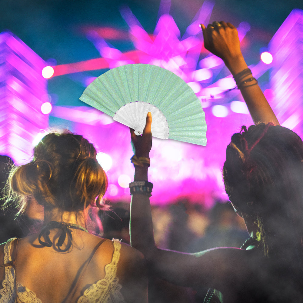 Our Glitter Fairy Blue Small Hand Fan with a clear handle is designed to keep you comfortably cool wherever you go. Measuring 16.5 inches fully opened with 9-inch arms, it offers a compact yet effective breeze. The vibrant, digitally printed design spans 13 spokes of durable polyester fabric, ensuring lasting color and clarity. Its sturdy plastic handle features a smooth, screw-less rivet hinge for easy use, and a charm loop allows you to add a personal touch. This fan combines style, durability, and convenience for everyday comfort.