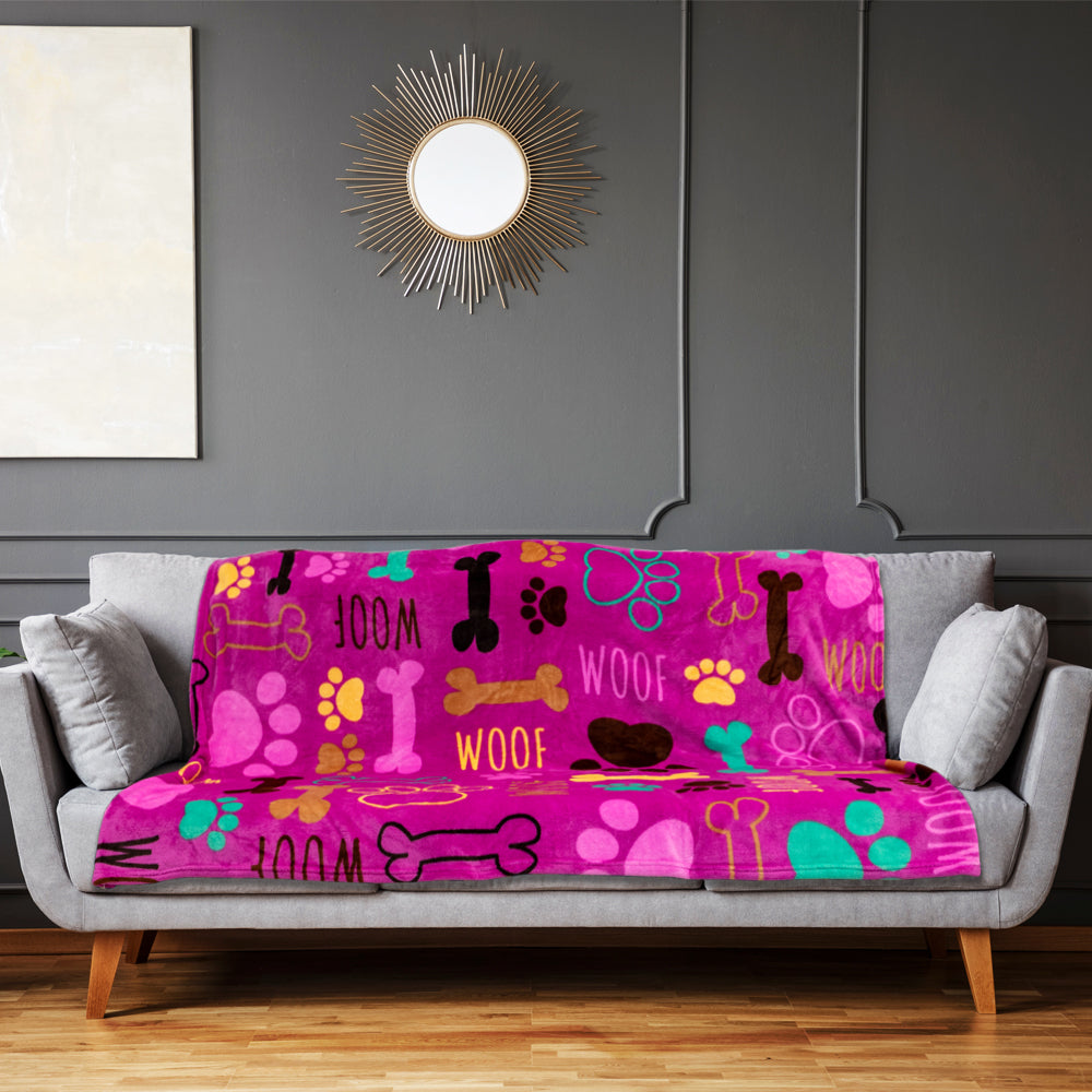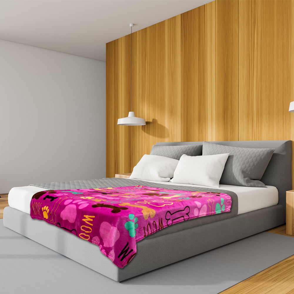 This Puppy Paws (Pink)) Soft Plush 50x60in Blanket features beautiful bright colors. Blanket is made from a premium 100% Polyester fabric with a rich, soft plush feel. Machine washable convenience and rolled hem edging ensure long-lasting resilience in your home, all while staying warm and cozy!